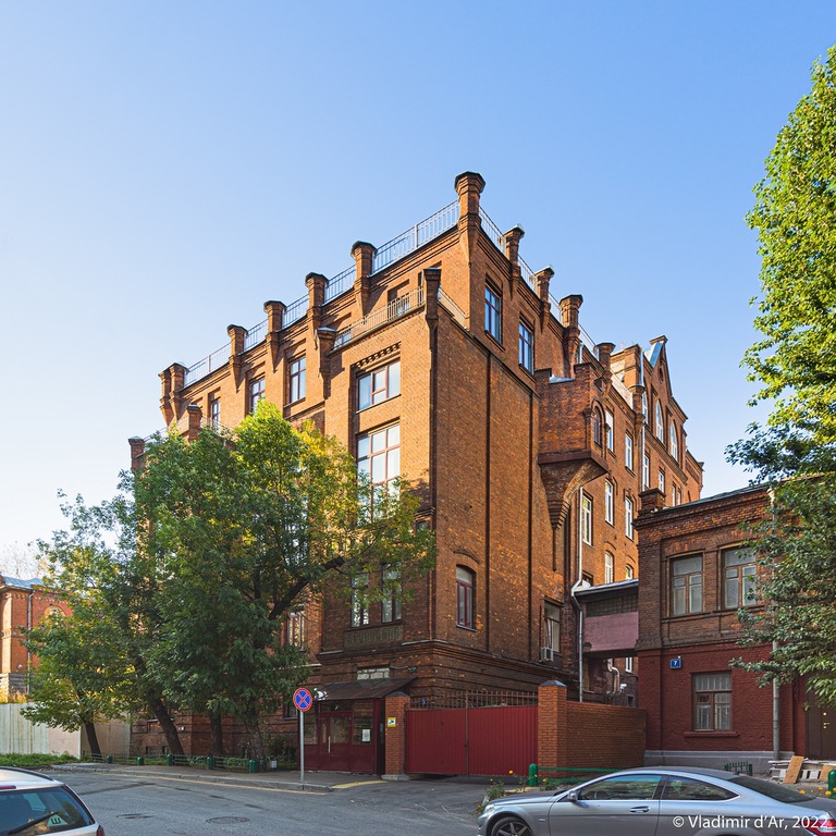 Евангели́ческая больница - архитектурный ансамбль в Москве, возведённый архитектором Отто фон Дессином в 1903-1914 годах по заказу московской лютеранской общины для устройства лечебницы (на фото правое крыло). Архитектура Евангелической больницы выполнена в эклектическом стиле с элементами неоготики и модерна, сочетающими декоративные пинакли, башенки, фальш-зубцы, навесные бойницы и шатровые кровли. Позже постройки были объединены крытыми переходами в единое здание, ныне - строение 1. Её историческое здание (Переулок Обуха, 5, стр. 1, 2) является выявленным объектом культурного наследия регионального значения. В настоящее время в здании располагается Отдел исследований мозга и Многопрофильный научно-диагностический центр Научного центра неврологии РАМН, а также аптека.